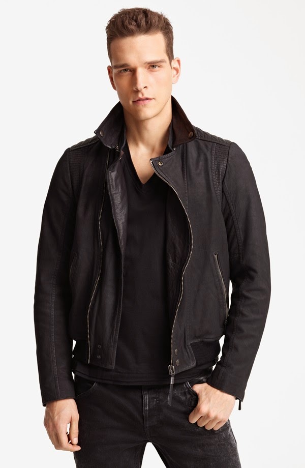 unbuttoned to show off the t-shirt. Add leather gloves, boot and a motorbike
